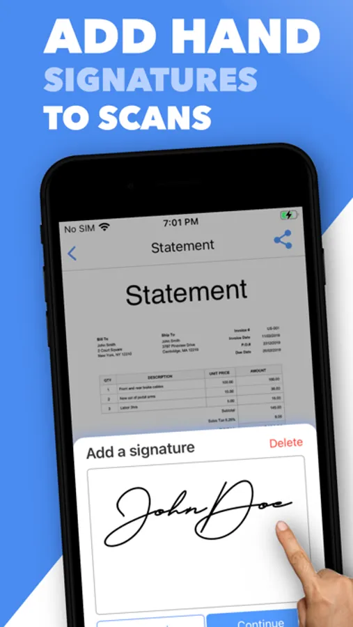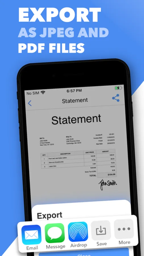 ● Email the scans as PDF, JPEG, or save to Camera Roll
