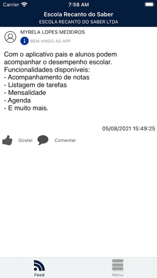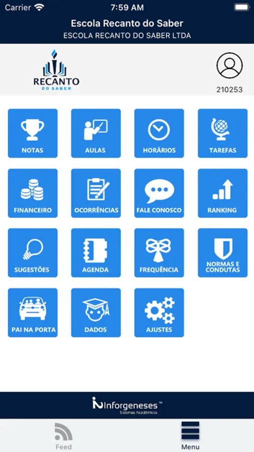 Ambiente on-line para alunos e pais de alunos gerenciado pela escola.