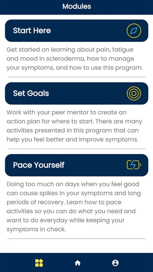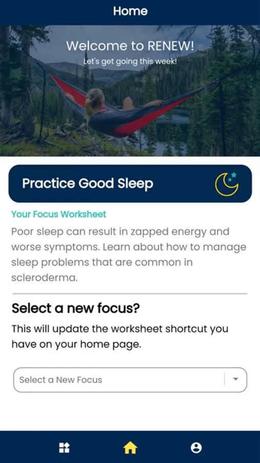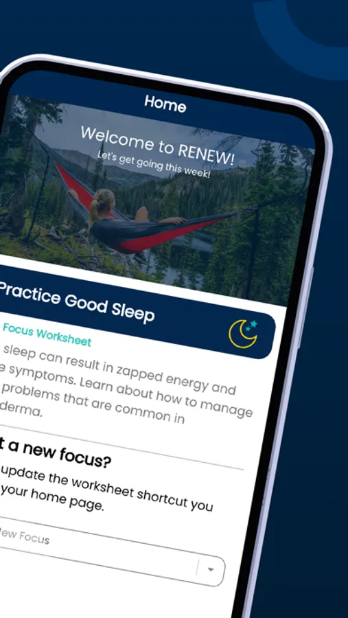Renew Scleroderma helps people with scleroderma manage their fatigue and enhance wellbeing. It involves health coaching from trained peer mentors. Renew Scleroderma allows users to read information about scleroderma and to set and track weekly goals and complete activities relevant to these goals.
