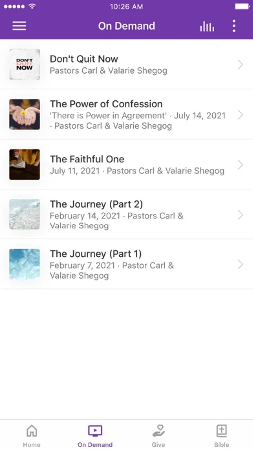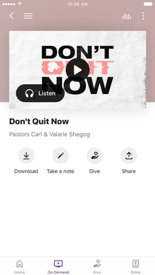 This app will help you stay connected with the day-to-day life of our church. With this app you can: watch or listen to past messages; stay up to date with push notifications; share your favorite messages via Twitter, Facebook, or email; and download messages for offline listening.