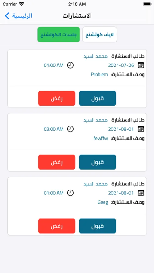 من خلال التطبيق يمكنك الانضمام للمدربين والمستشارين لاكاديمية الكوتشنج العربية ، وايضا متابعة الاستشارات الخاصة بك وكذلك اضافة المواعيد الخاصة بك .