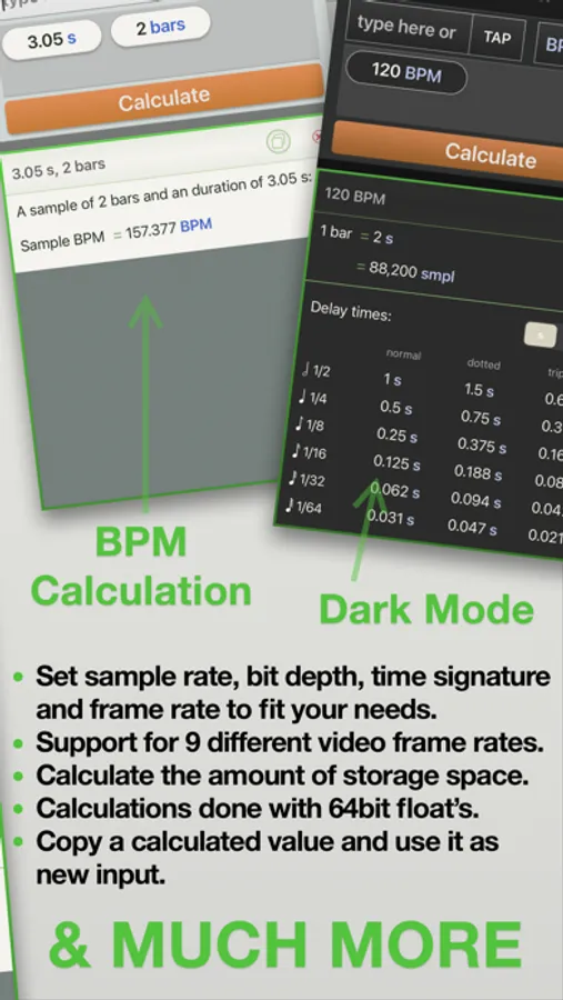 The Ultimate Music Math Calculator for your everyday calculations. Simply add the values you know and the app will intelligently figure out what it can calculate for you.