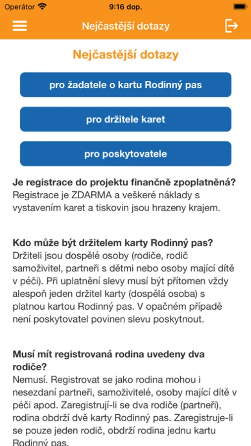 Aplikace Rodinné pasy umožňuje snadné vyhledávání v síti poskytovatelů slev ve vašem okolí v celé České republice. Osoby registrované v projektu mohou využívat slevy u více jak 3 000 poskytovatelů. Kamkoli se vydáte, budete mít díky této aplikaci přehled o slevách na dosah ruky.
