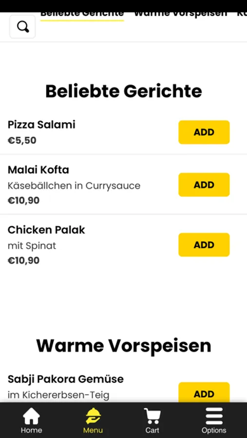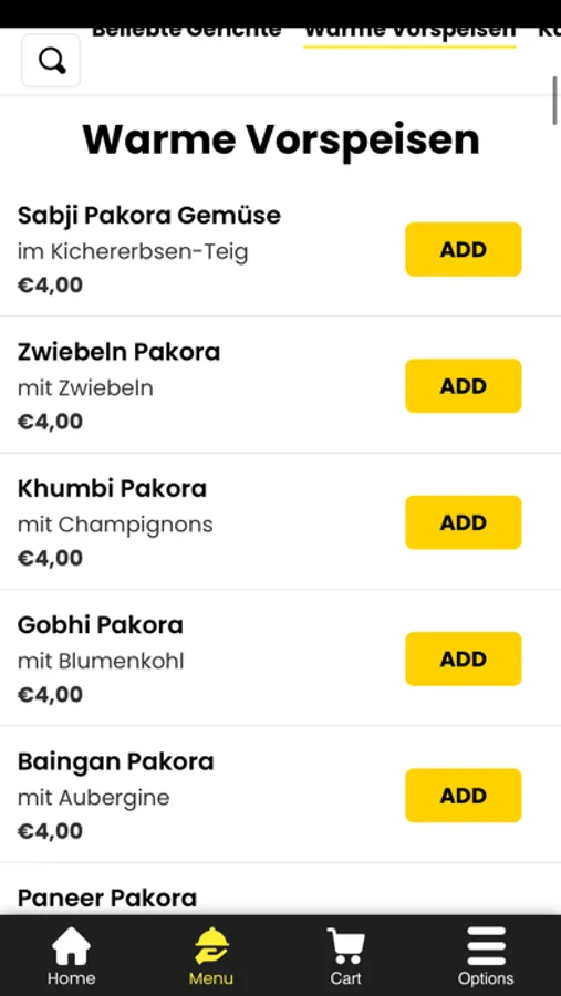 - Durchsuchen Sie die Speisekarte des Restaurants und sehen Sie sich alle anpassbaren Optionen im Voraus an