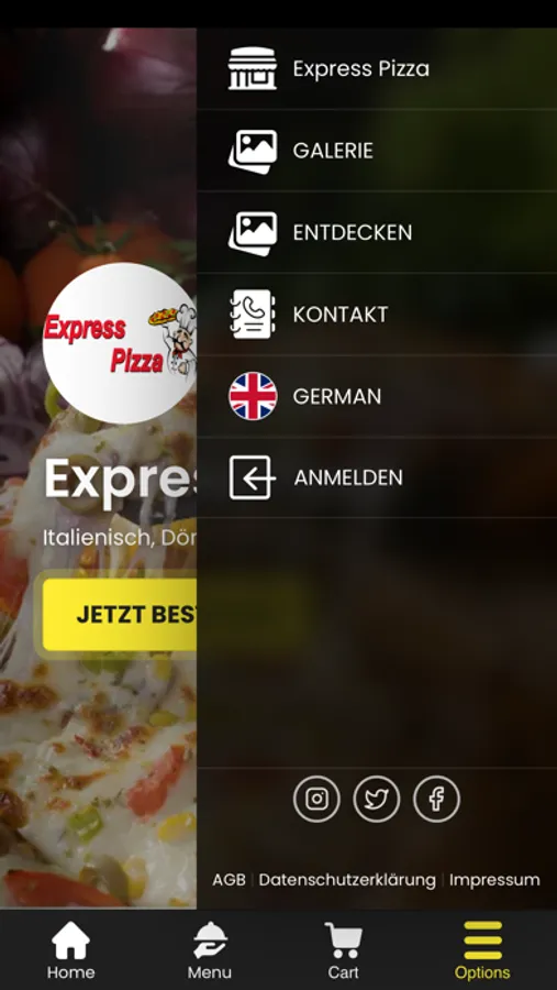 Mit der Express Pizza Mobile App können Sie Ihre Italienisch, Döner, Indisch bequem von zu Hause aus genießen. Stöbern Sie in unserer Speisekarte, wählen Sie die Gerichte aus, die Ihnen schmecken, und geben Sie Ihre Bestellung in Sekundenschnelle auf.