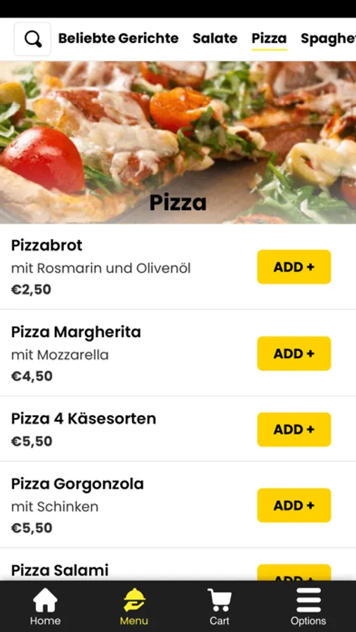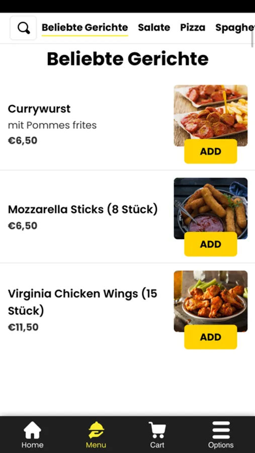 - Durchsuchen Sie die Speisekarte des Restaurants und sehen Sie sich alle anpassbaren Optionen im Voraus an