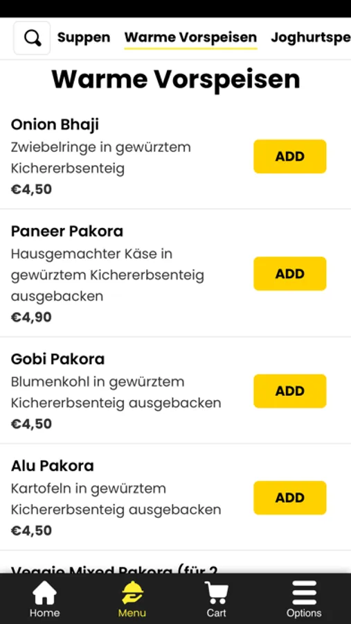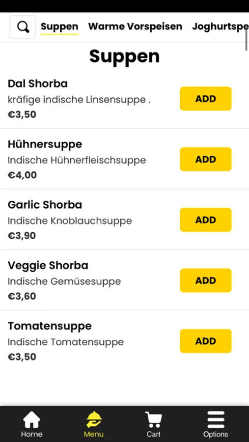 - Durchsuchen Sie die Speisekarte des Restaurants und sehen Sie sich alle anpassbaren Optionen im Voraus an