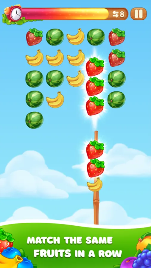 Move the stick to match 3 same fruits in a row. Can you connect all the pieces together? Check it out in our casual game for logic and thinking!