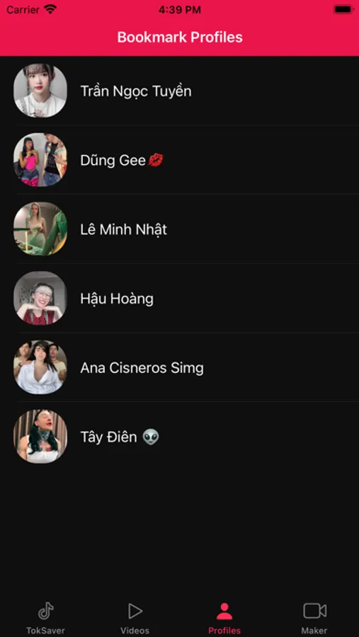 - Bookmark Tik tok users' Profiles, list and watch all their videos.