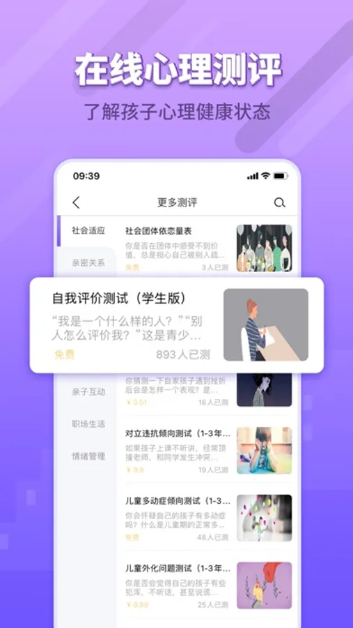 由著名心理专家及国内知名高校教授提供专业的心理咨询服务,包括北师大心理专家蔺秀云教授、心理学博士江永强等,从心理学和教育学的视角解决儿童和青少年发展中的包括考试焦虑症、社交恐惧症、网络成瘾、性格塑造、消除厌学逃学和学习障碍、协调同学关系和亲子关系等诸多问题。