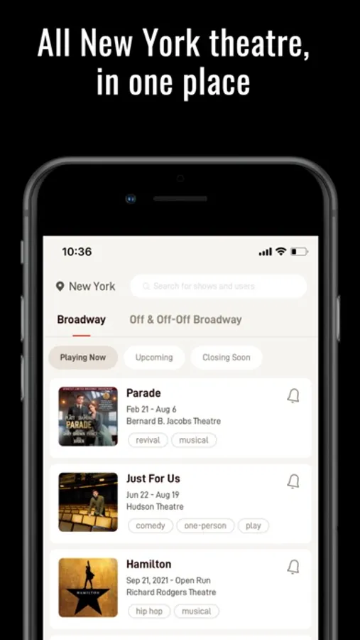 The THEATR App gathers a community of theatre insiders to surface the hottest new shows in New York City. From fringe ones in the corners of the city's five boroughs to critically acclaimed new works on Broadway, we collect those scattered shows all in one place for you. Recently saw a show that struck a chord? Share your thoughts with the community and help us decide what's trending now!