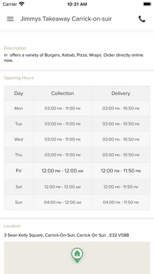 Here at Jimmys Takeaway Carrick-on-suir, we are constantly striving to improve our service and quality in order to give our customers the very best experience. As a result, we are finally proud to unveil and introduce our latest improvement, our new online ordering app! You can now relax at home and order your favourite, freshly prepared meals from Jimmys Takeaway Carrick-on-suir in Carrick On Suir . You can even pay online!