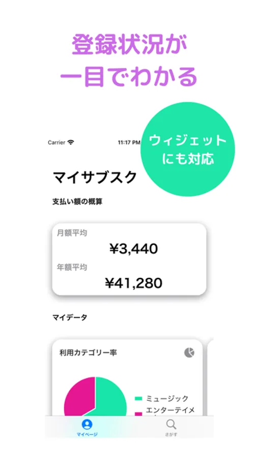 ・どんなサブスクサービスを登録してたかが一目でわかる(ウィジェットにも対応)