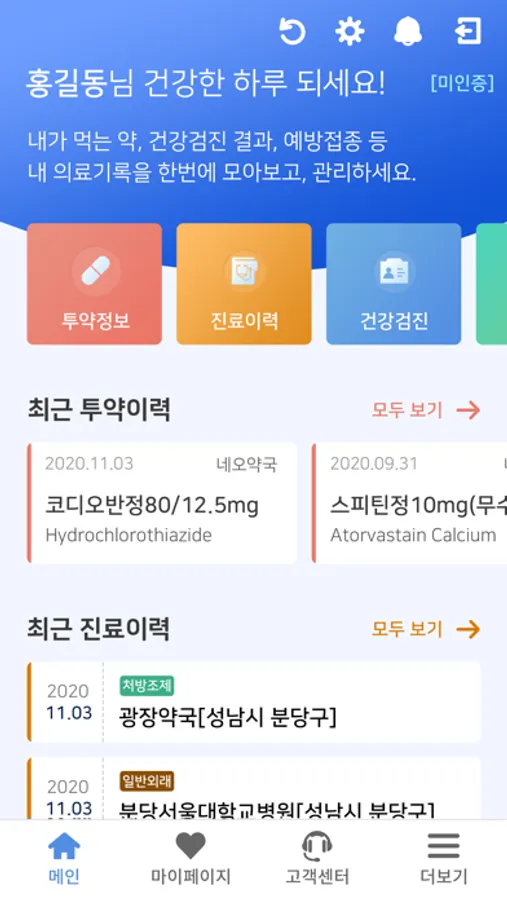 ▶ 의료기관 및 약국을 방문한 기록이 궁금할 때