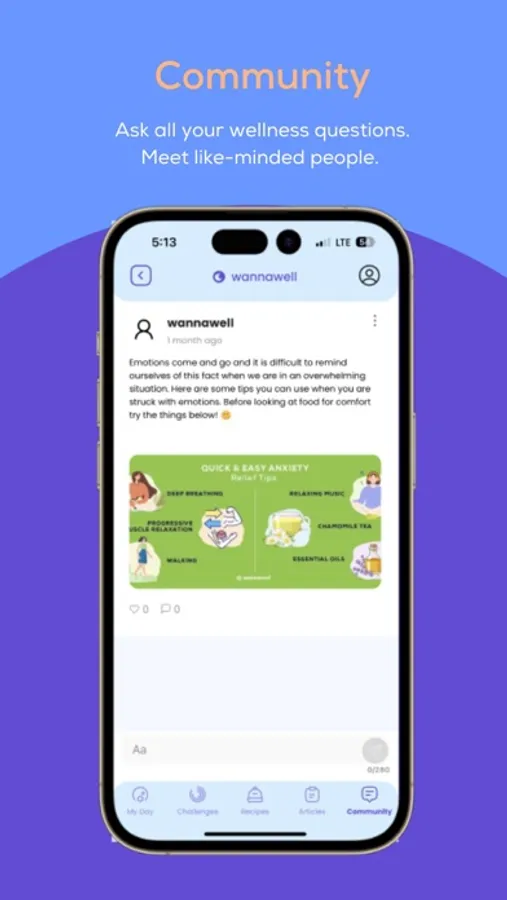 The WannaWell app offers habit-building programs, healthy recipes, goal-setting, mindfulness coaching, and more! Tackle emotional eating, overeating, digestive health, relationship building, and excessive complaining - all within one powerful health app.