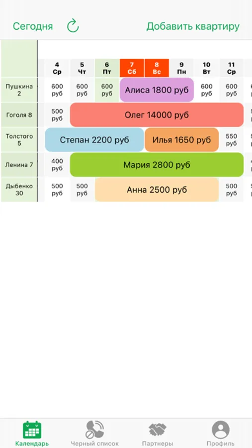 Приложение «НаСуткиКалендарь» позволяет вести учёт заселения Ваших гостей при посуточной аренде: