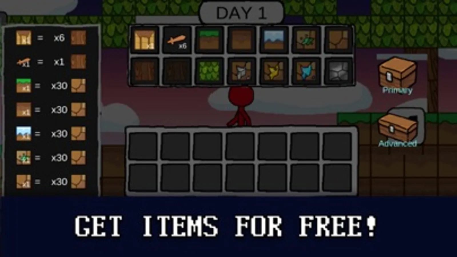If you want to live in this stick world, you should learn to hunt the sheep to get meat and pick apples as supply, avoid the dangerous monsters, collect different materials, study formulas of the necessity goods, make any things you may need with the resources you collect, use weapons to fend off the enemies… Do you have the determination to survive your stick life?