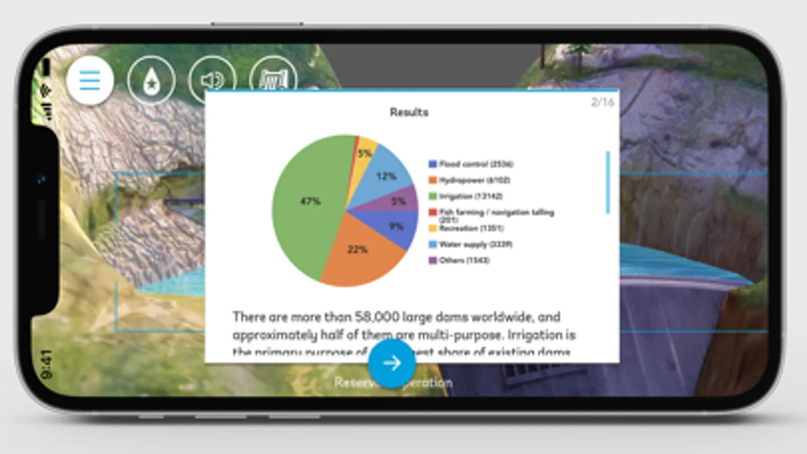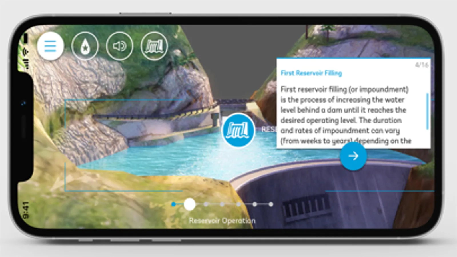 A World Bank Augmented Reality application to raise awareness on the importance of dam safety through experiential learning. This AR app combines 3D landscape modeling and simulations with learning modules on different topics related to dam safety. With this app, users can learn about different types of dams, the ways in which they can fail, and the key aspects of dam safety management. Users can also access resources on the World Bank’s Environmental and Social Standards related to dam safety and learn more about good international industry practice. At the end of the AR experience, users will better understand what it takes to ensure the safety of dams and the communities who live downstream of them.