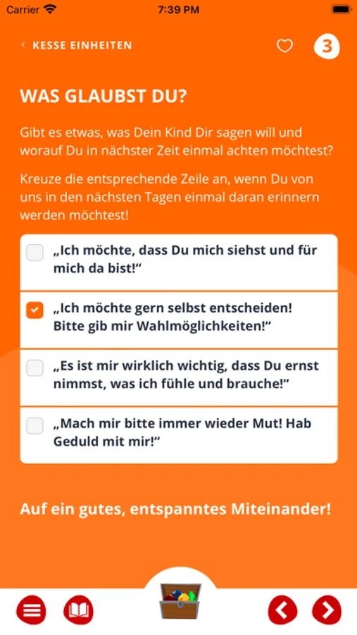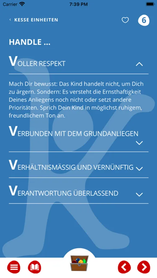 Erziehung darf Spaß und Freude machen. Die App zeigt einen Weg dahin auf. Die sieben Einheiten der App bieten Reflexionsaufgaben, Erziehungstipps und vertiefende Impulse für den Erziehungsalltag. Erfahrene Pädagog*innen und Psycholog*innen aus der Erziehungsberatung und Familienbildung haben die App entwickelt und laden ein, den einzelnen Impulsen nachzuspüren und die einzelnen Anregungen im Familienalltag umzusetzen.