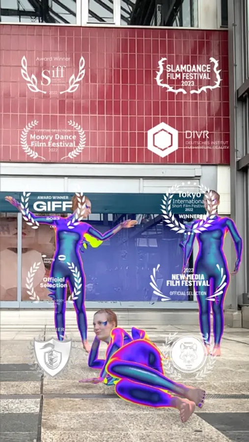 Whether at your home, in open space, at Slamdance Festival in Saltlake City, at CCCB Barcelona or at NRW Forum in Düsseldorf – ›kin_‹ has been part of plenty of festivals, conferences and exhibitions with several international awards won, proving that the performance is experienced literally anywhere on Earth. The exact exhibition venues can be found in the event calendar on the serie’s website www.kin.dance, which is also accessible via the app.