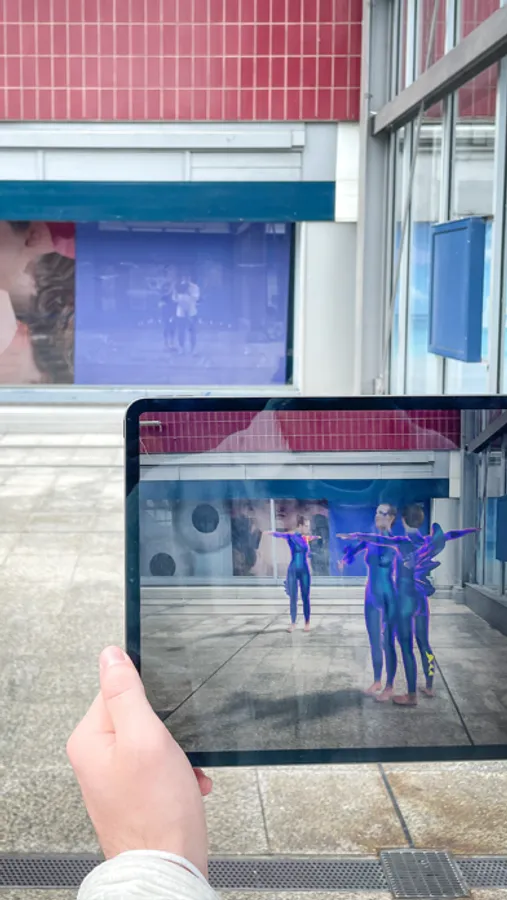 ›kin_‹ is a performative dance piece by Charlotte Triebus exploring human corporeality with digital technology. One to three avatars move in augmented space and can be approached and experienced via your own mobile device. You are invited to join reality entanglements and its distortions, to sense alien intimacy and the fine line between observation and surveillance. Between agency, connection and interaction, the avatar dancers react to proximity and distance, movement and wind impulses. Together with its follow-up ›proxy‹ it brings Performance Art right to your finger tips.