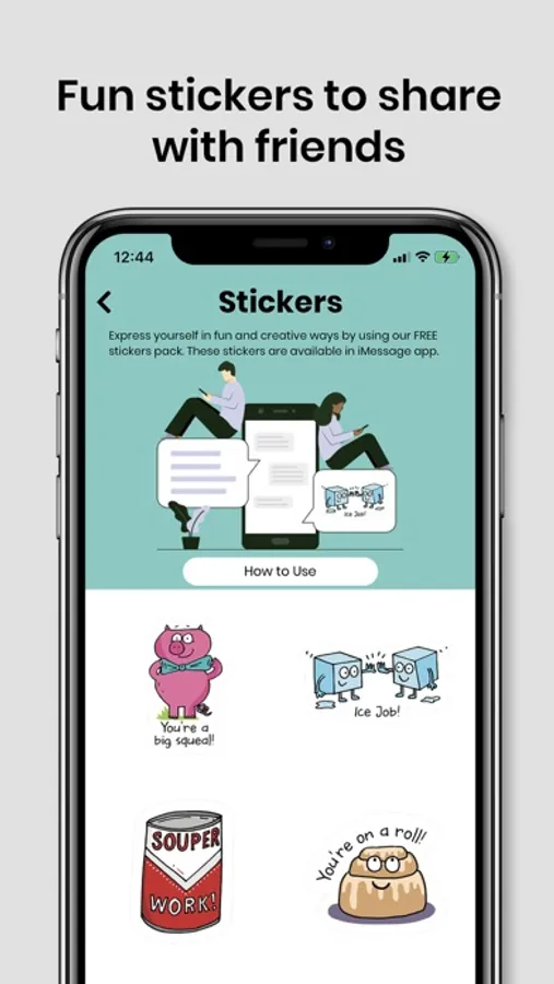 STICKERS- Express yourself in fun and creative ways by using the FREE stickers pack in messaging apps.