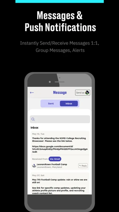 Manage, Communicate and Engage your sports community. Keep track of and interact with your athletes!