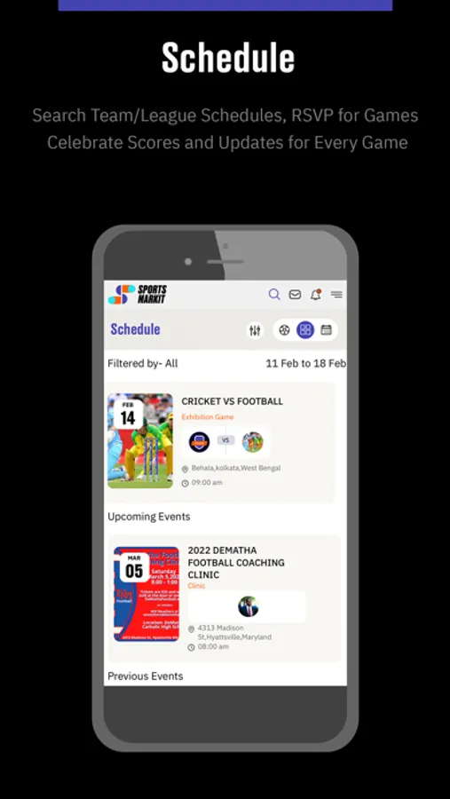 Search Team/League Schedules, RSVP for Games, Celebrate Scores and Updates for Every Game