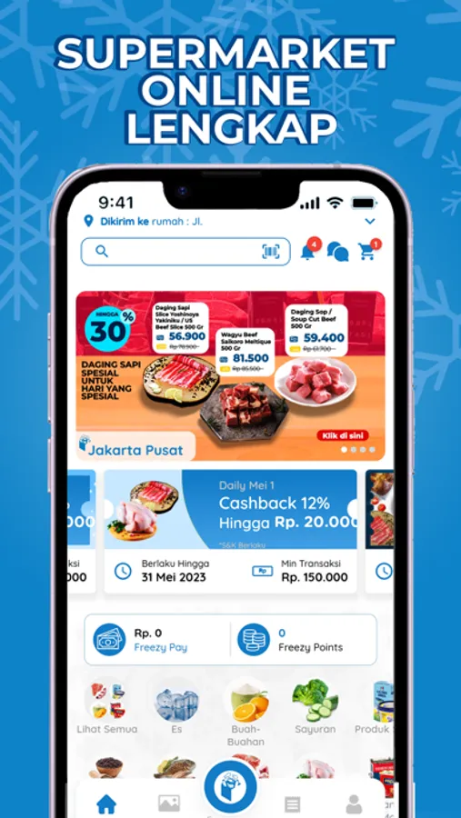 Kamu bisa memilih ribuan jenis produk segar di Freezy Fresh Apps. Tinggal klik, produk kamu akan langsung diproses dan diantar ke rumah kamu dengan menggunakan kurir instan dalam keadaan segar!