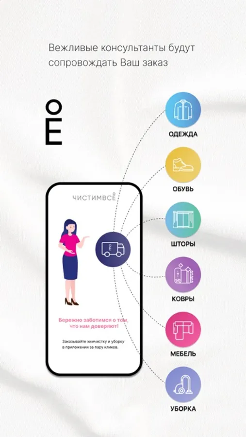 ЧИСТИМВСЁ — это сервис по уборке и химчистке с доставкой. Больше не нужно нести свои вещи до приемного пункта, все сделаем за вас. Вежливые консультанты помогут оформить заказ. Заберем, постираем, вернем. Оплата по факту получения чистых вещей.