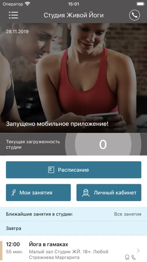 С помощью приложения вы можете следить за расписанием занятий в студии, оперативно получать информацию об изменениях в расписании, записываться на классы и оплачивать их.