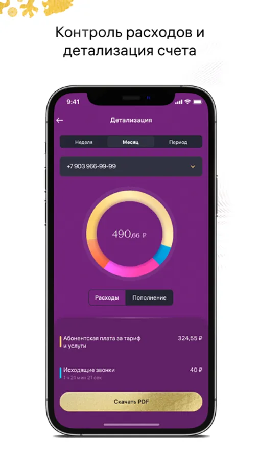 Финансовая информация о начислениях и платежах, анализ расходов доступны в разделе детализация счета.