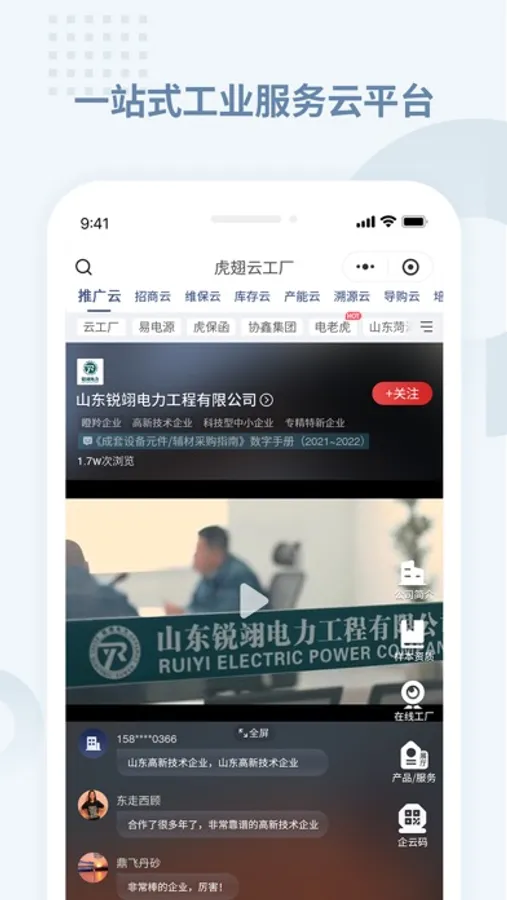 虎翅云工厂一一工业企业常用的"商业场景云服务平台"!帮助企业掌上解决数字化推广/库存处置/远程售后维保/产能预售等难题。