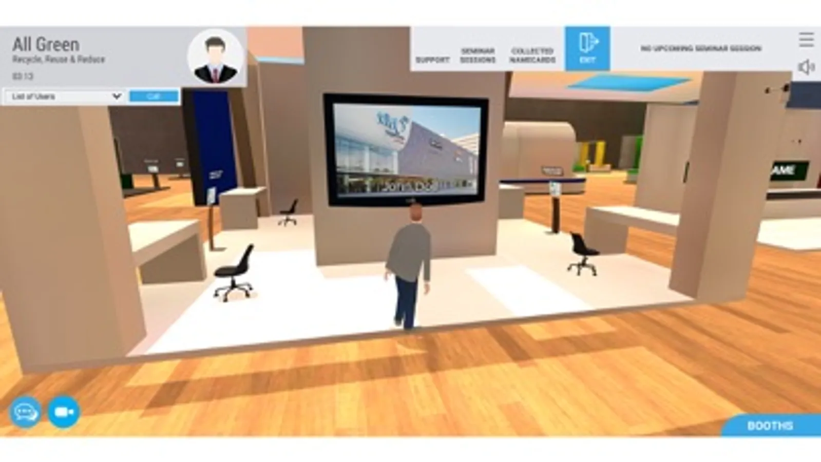 Unlock the benefits of Virtual Event with little or no instruction. Immersive, colorful environments allow users to comfortably walk around, browse content, network with exhibitors/booths owners or peers, and attend live webinars with only a few taps.