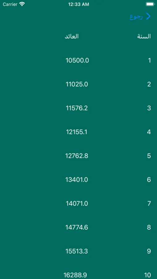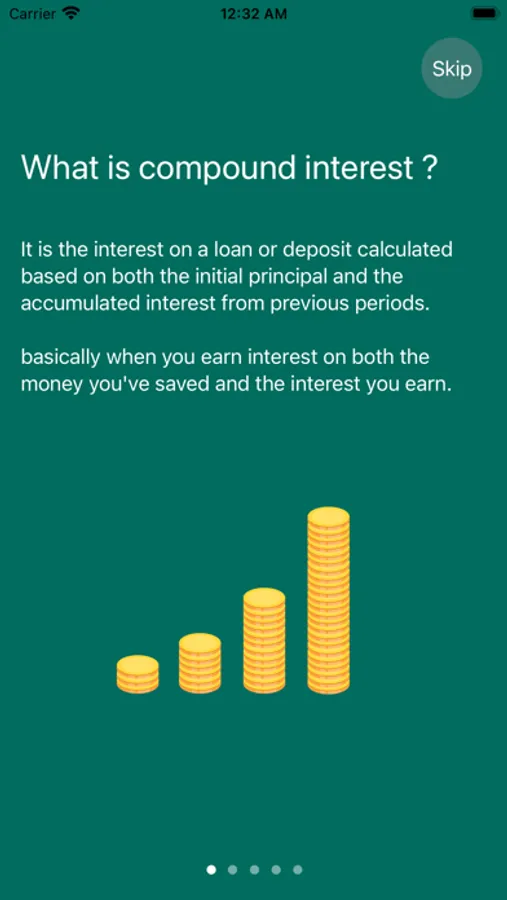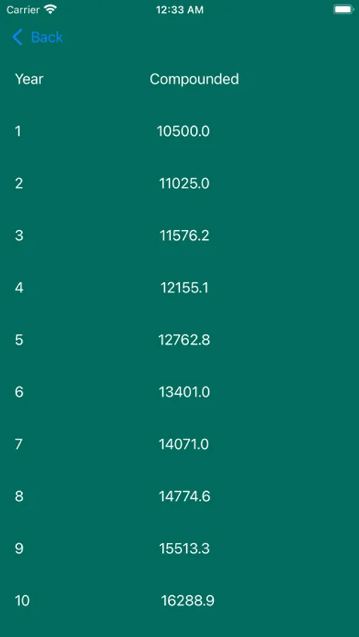 the app will calculate the compound interest based on your money and selected year, then display a list with the growth of your money.
