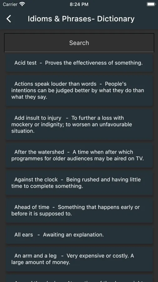 Learning to use common idioms and expressions will make your English sound more native, so it is a good idea to master some of these expressions. This app is organized by how common English idioms are. You can start by learning the very common English idioms, start now from level 1. .