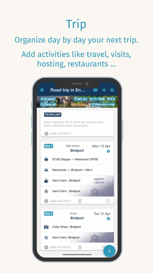 On The Road Again is an easy app to prepare your next trip. Organise easily your activities day by day, visualize your planning, save all your booking references, have a view on your total budget (with multi currency), see it on a map.