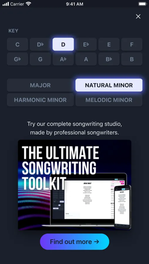 If you're on the train, or at work, and you have an idea for a song, you can just start playing with Chorus Chords, and get your ideas down. If you're a songwriter, that's one of the most important things you can do - play your ideas as soon as they come to you!