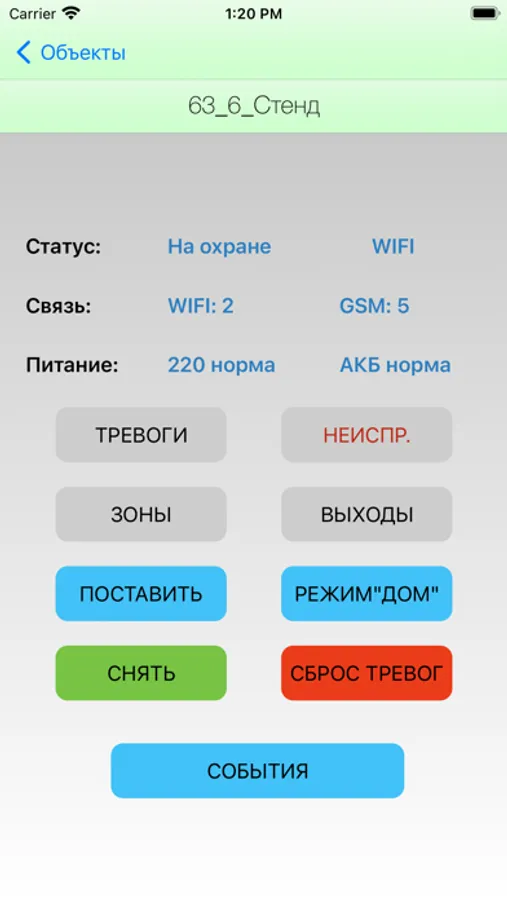 - Отображение текущего состояния охраняемого объекта или объектов.