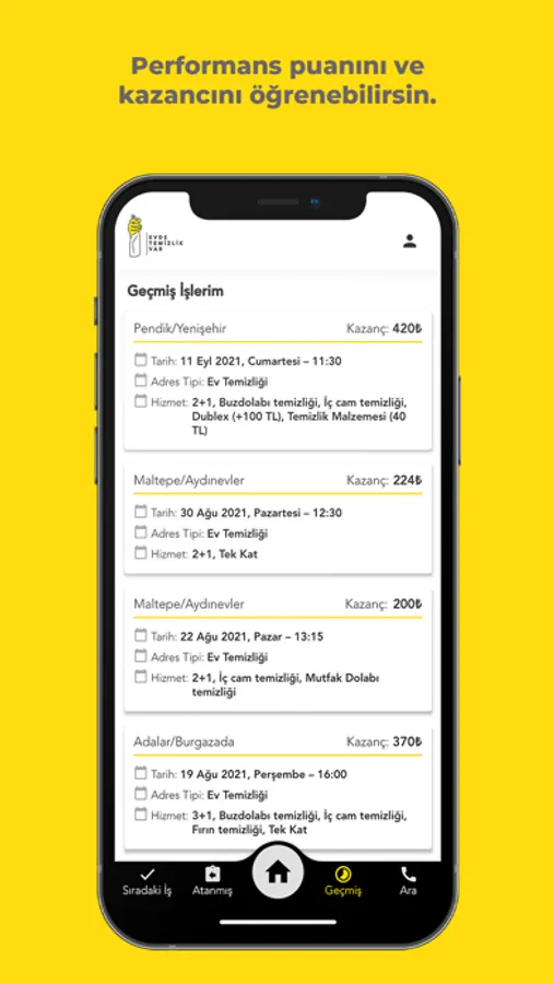 Bir hizmet seçtiğinde ve o işe gittiğinde sana özel bir puanlama sistemimize düşüyor. İşini özenli, güler yüzlü ve sabırlı bir şekilde tamamlayarak bu puan ortalamanı yüksek seviyelerde tutabilirsin.