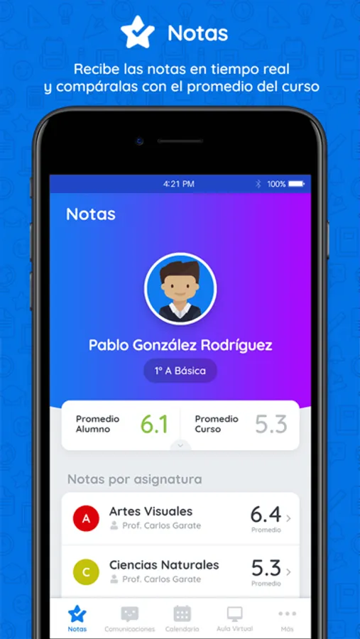 Además los estudiantes podrán ver sus notas, recibir comunicaciones, visualizar los eventos del establecimiento, entre otras.