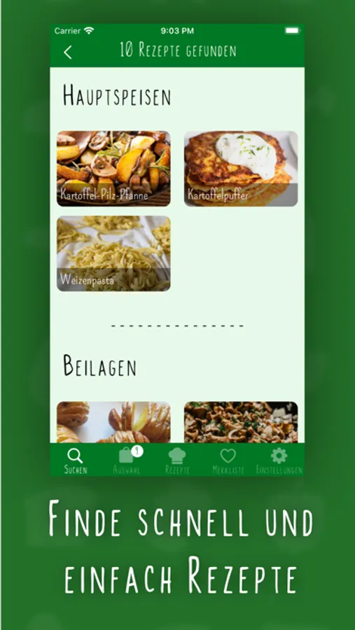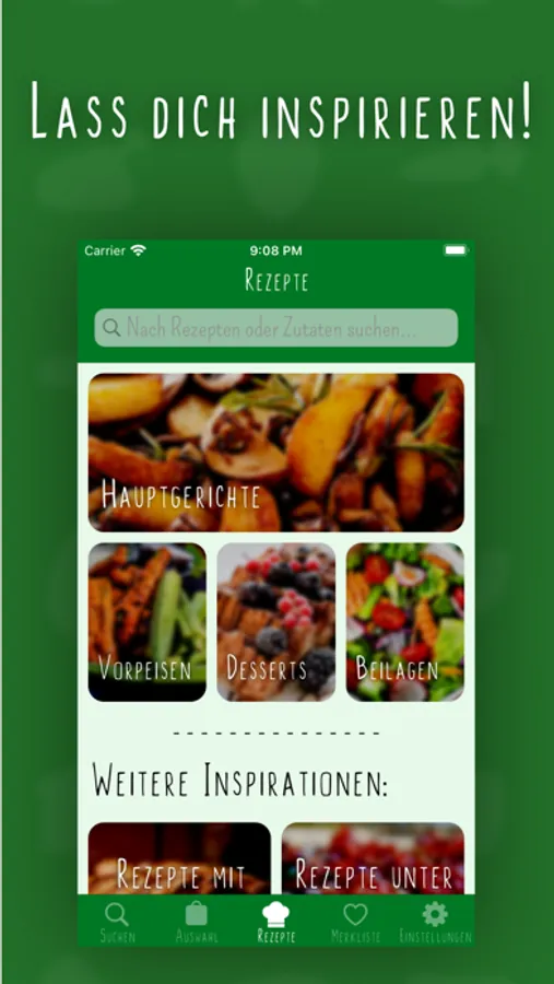 - Scrolle klassisch durch die Kategorien wie z.B. Vorspeisen und lasse dich inspirieren