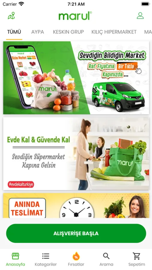 Türkiye'nin en kaliteli sanal market uygulaması Marul ile mahallenizdeki marketler evinize taşınıyor.