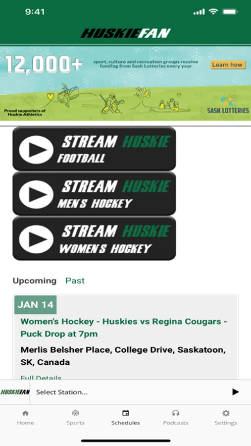The HuskieFAN app delivers everything a fan would want all in one app! Catch every U of S Huskies home and road game for Football, Men’s Hockey and Women’s Hockey. All three teams will have their own dedicated livestream so no need to worry about conflicting schedules, just pick the team’s stream and cheer on the Huskies!