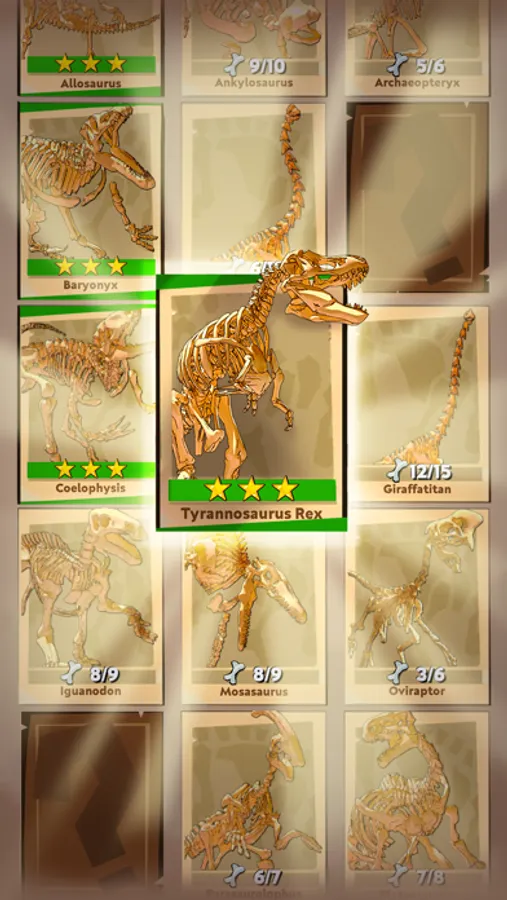 Be part of an incredible jurassic adventures! Dig up for discovering dino fossils, such as velociraptor, t-rex, triceratops, and other animals from prehistoric times. When you complete the fossil puzzles, earn dinosaur sculptures and add them to your museum collection. Explore your 3D gallery, manage the artifacts you discover, and become a worldwide dinosaur tycoon.