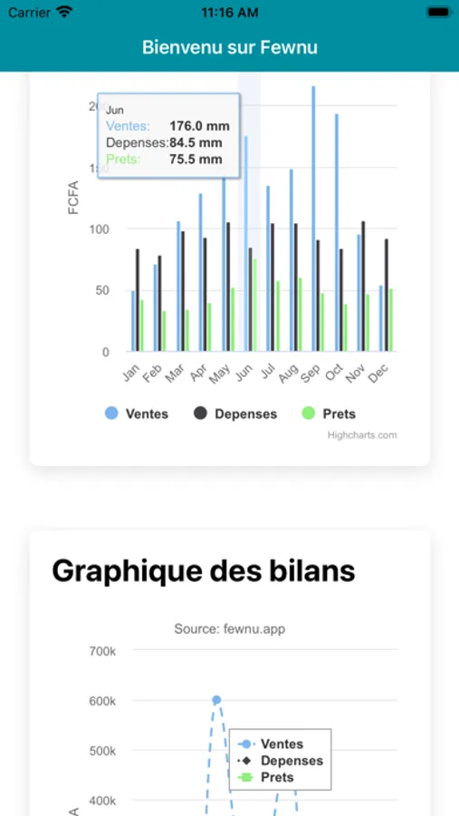 Avec sa simplicité, Fewnu vous offre des interfaces conviviales où vous pouvez enregistrer vos ventes, dépenses et prêts.
