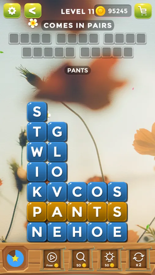 • When stuck you can use search and shuffle hints and find new words easily.