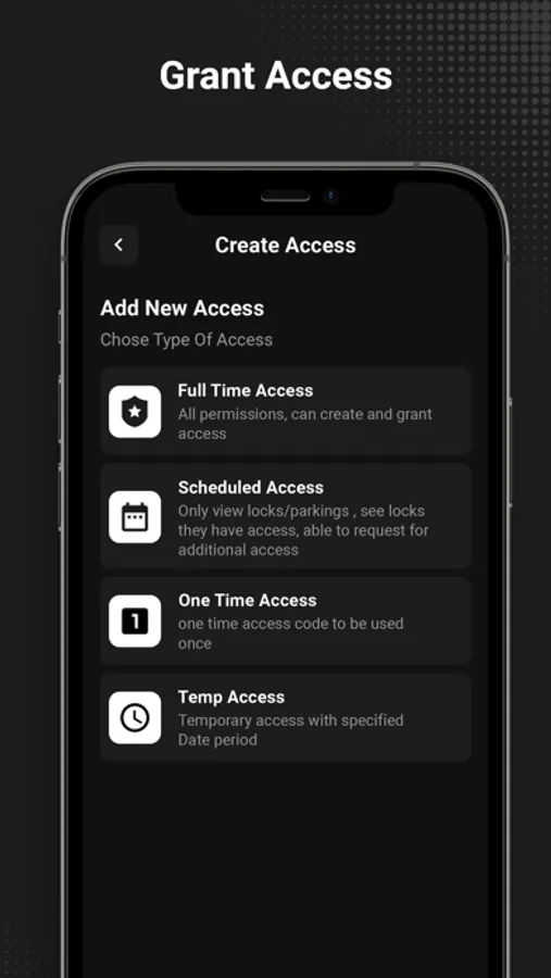 Multi-User Accesses for your Assets or Parking Spaces. Create Scheduled, Full Time, Temporary or One-Time Accesses.