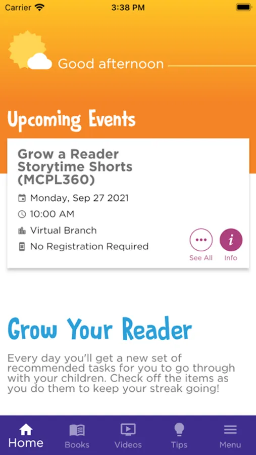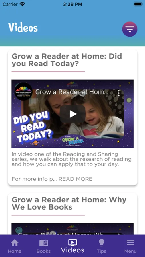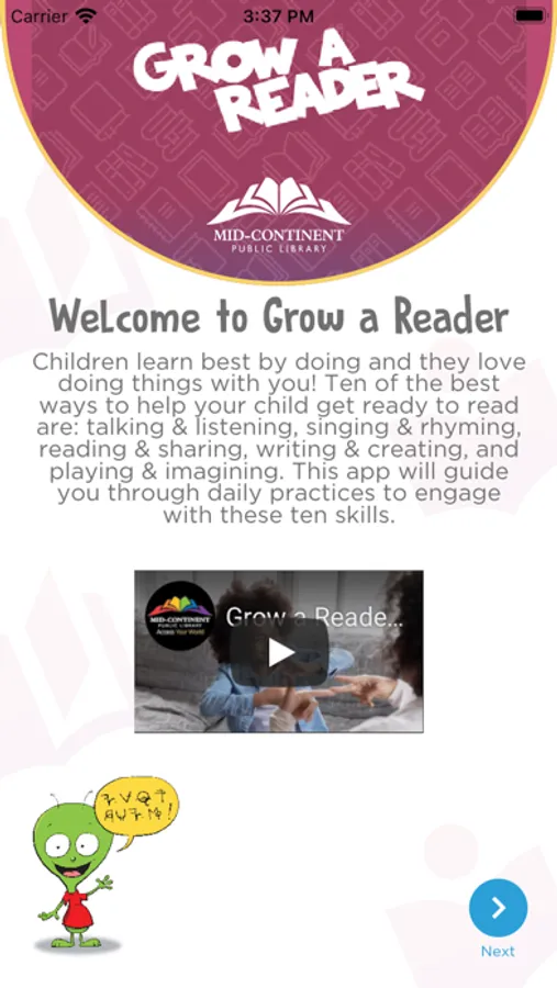 Learning to read begins before children start school and even before they can pick up a book. Use MCPL Grow A Reader to help your child develop important pre-reading skills they need to become successful readers and lifelong learners, including talking, listening, singing, rhyming, reading, sharing, writing, creating, playing, and imagining. The Grow A Reader app includes books, tips, and videos that caregivers can use to help prepare their child for school and create a strong foundation for future learning.