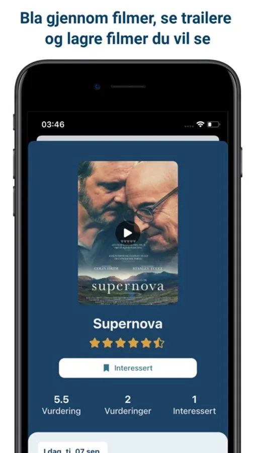 • Merk filmer du gleder deg til som "interessert", og få en påminnelse når de kommer på kino.